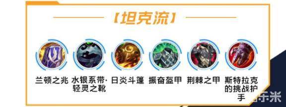 坦克流出装: 兰顿之兆+水银系带·轻灵之靴+日炎斗篷+振奋盔甲+荆棘之甲+斯特拉克的挑战护手