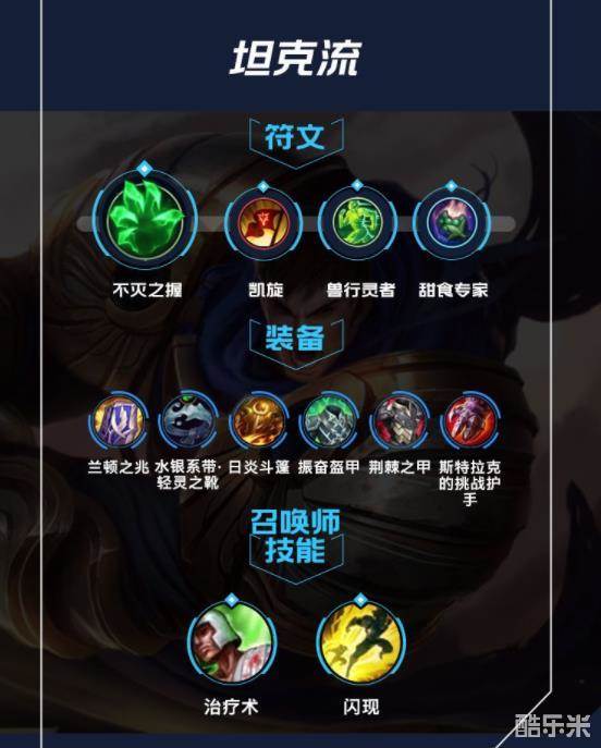 坦克流符文搭配:不灭之握+凯旋+兽行灵者+甜食专家