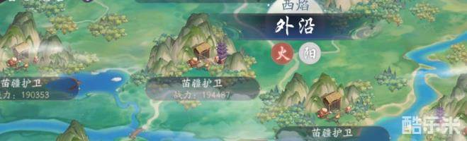 再者就是这个苗疆觅宝玩法的具体内容,其实它就是一个占地获取资源的玩法,小伙伴们来到苗疆觅宝玩法界面,可以在地图上看到各个苗疆护卫的领地,每个领地的战力要求都不一样,小伙伴们占领成功相应领地之后,就可以坐收资源了。