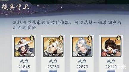 玩家可以选择雇佣系统提供的侠客来帮助通关,点击侠客的头像就能查看侠客信息。选择哪个侠客主要看玩家自己已有的侠客阵容,尽量选择自己阵容里缺少的类型和缺少的位置的侠客。