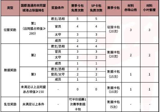 率土之滨烽火连城赛季结算规则