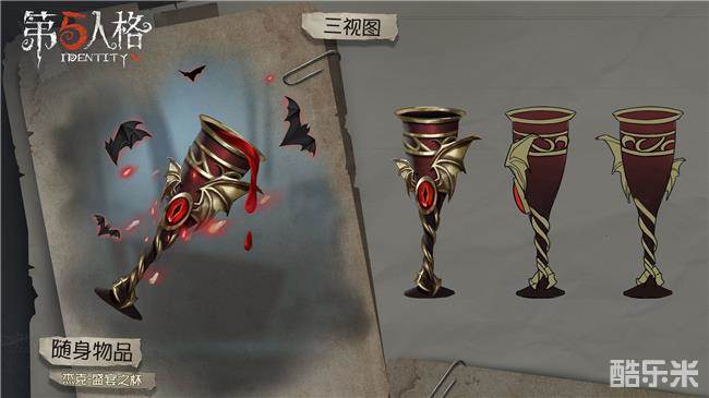 在魔典的庇护下,杰克-盛宴伯爵已不再贪恋往昔的饮品,甜美醇香的红酒在杰克奇珍随身物品-盛宴之杯中摇曳,折射出炫目的光芒,深红色的酒杯上缠绕着金纹,蝙蝠形状的杯把中央是一颗恍如血瞳的宝石。杰克-盛宴伯爵将用它,致以欢庆万圣节的祝酒词,杯中的美酒,定能让你回味无穷。