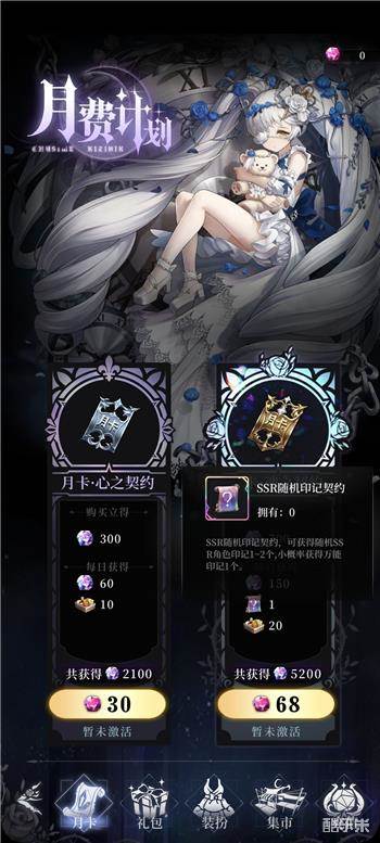 而对应这个SSR碎,就得提及大月卡了,相当于1~2个月便可以多一个SSR角色,可以说是微氪玩家的最好选择了
