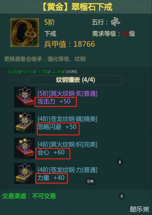 纹钢有两种分类,分配佩戴在内五行装备和外五行装备。