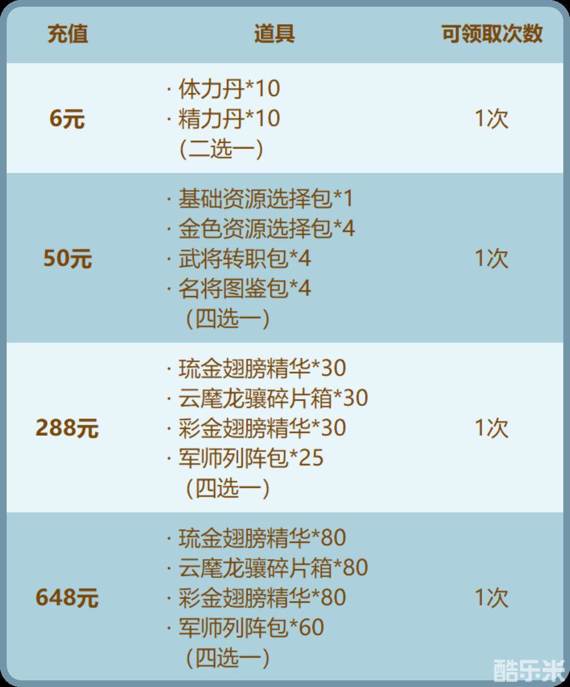 4.定制礼包的充值不与任何形式的单充活动叠加,如:欢庆佳节中单笔充值活动、天天返利、月基金、周基金、月卡、豪华签到等;