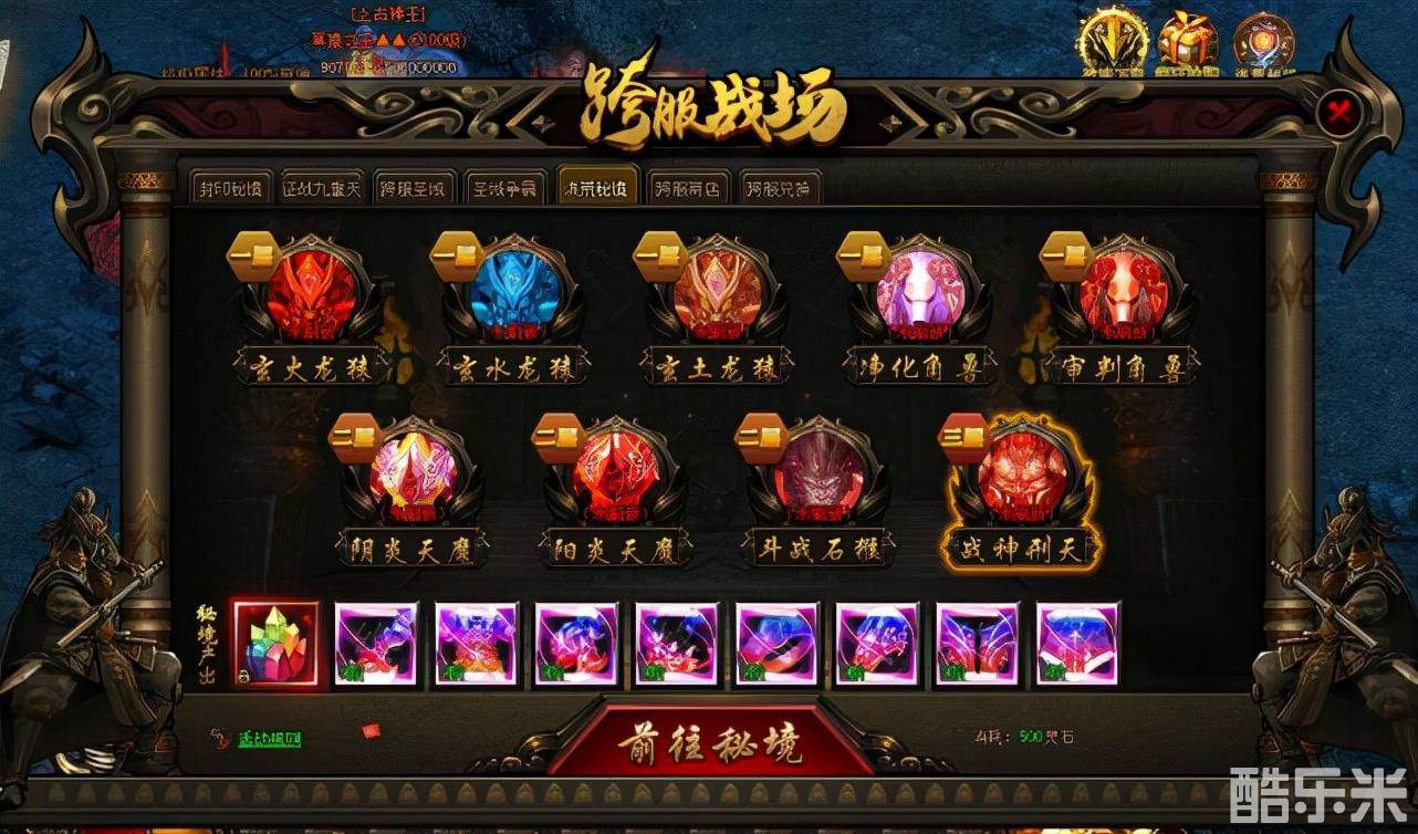 神戒洪荒秘境作为一个跨服BOSS地图,大家要想进入这个地图,就可以通过界面上方的“跨服战场”图标,可以找到洪荒秘境的入口的。或者在这个地图开放期间,界面上方也会有“洪荒秘境”的图标提示的。