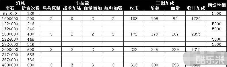 2. 根据列表数据,周泰7围满前,各项小技能、三围加成,以及丝绸回馈基本保持稳定的产出概率,平均点击100次约提升1级小技能,提升100点三围(攻击、防御、血量均匀分布),增加600点临时攻击加成,以及武将回馈一次(5000丝绸)。