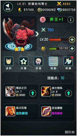 英雄的技能可以在英雄界面消耗技能点和金钱来升级。技能点需要通过时间来恢复,玩家也可消耗钻石来补充技能点。