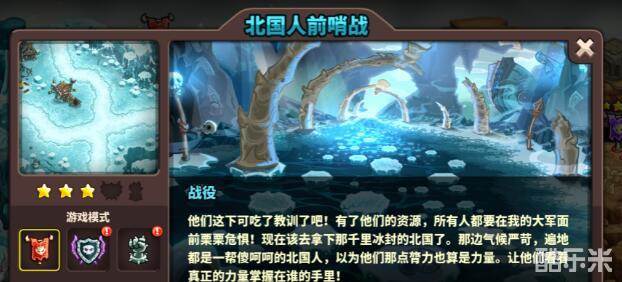1、王国保卫战4雪国地图的普通难度是在三星级左右,这个地图中有一个非常难以处理的问题就是,防御塔会被冻结,防御塔一旦被冻结就等于瞬间丧失了战斗力,因而玩家塔的设置非常重要,手速也是要非常快,如果有发现防御塔被冻起来了,要及时点击解冻,以最快的速度恢复阵线和战斗力;