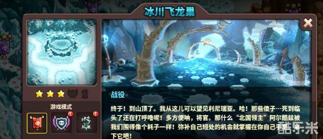2、王国保卫战4雪国地图中最后一关的冰龙强度非常高,而且冰龙的能力非常全面输出、控制都有,在这个地图中防御塔推荐选择兵塔黑暗骑士、魔法塔死灵墓和炙热宝石、兵营精英骚扰者和任意防御塔,在这些防御塔中炙热宝石是最重要的,可以很好的应对冰冻的问题,在这个地图中及时保持自己的战力是一个非常重要的通关方式。