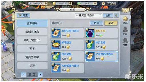 PS:为什么不推荐另外三个打造符?因为这三个打造符在我所在的区里面售卖价格很惨的,挂到了400金币一个,远不如其他的生活用品。