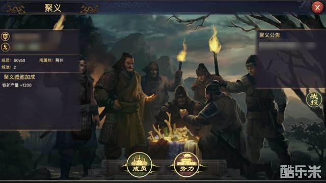 流浪军可以与其他流浪军建立最多50人的聚义势力,聚义玩法同同盟玩法类似,聚义成员间可以共享视野,同时不能相互攻击,同时聚义势力也可以占领城池,获取城池资源加成。