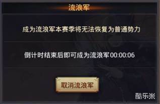 三、按提示确认成为流浪军后,期间还有10秒的后悔时间,再次强调:成为流浪军后,本赛季内将无法变回普通势力。