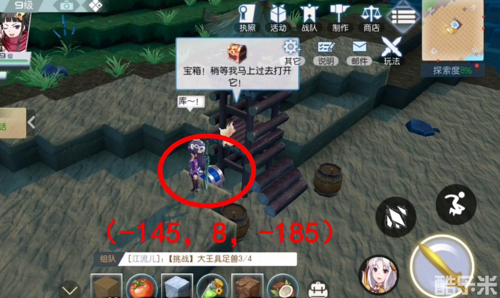 这个宝箱在水里面,需要往箱子下面放置一个方块,宝箱才会被顶出水面。