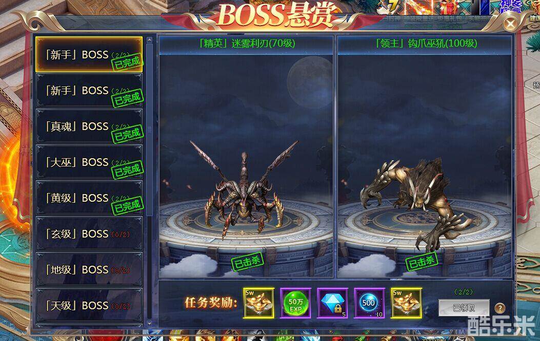 根据BOSS难度不同,玩家所获得的奖励,也是不同的。BOSS悬赏任务难度越高,可获得的奖励也会越好的。玩家完成BOSS悬赏任务,主要能获得一些装备宝箱、经验丹、绑钻、修为丹等奖励。