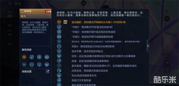 雾萌萌在上个版本登上电竞传奇模式后,终于要在这个新版本中正式和大家见面啦。作为HS战队中的狙击手,雾萌萌有着多条犀利属性:狙击魅影:竞技模式开局随机从天赋1~3中获得1条:*天赋1:竞技模式开局/复活后加速3秒;*天赋2:竞技模式提升狙击枪的切枪速度;*天赋3:狙击枪开镜可减弱烟雾弹效果。除此之外,她依旧保留了HS相关角色的特点:音乐宣言、应急攻击等属性。雾萌萌是一个非常适合狙击手使用的顶级角色!