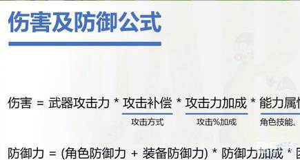对于防御方面而言,在数值防御力加算后与百分比和buff组成了三个乘区,而减伤比例则是使用了常见的加100做除数的算法。