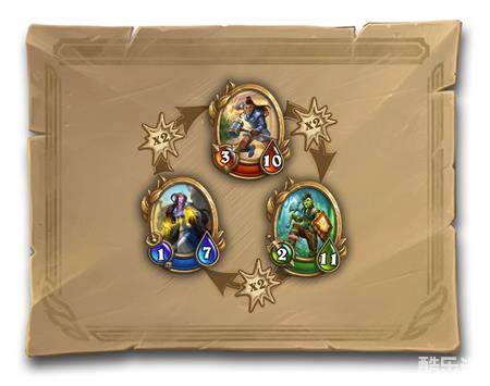 在这个模式里,不同职业间是存在双倍伤害的克制关系的,红色护卫克制绿色斗士,绿色斗士克制蓝色施法者,蓝色施法者克制红色护卫