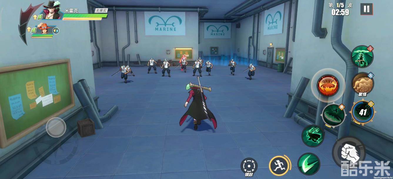 这一波主要击败的敌人就是海军精英传令员,在没有控制技能的情况下,我们只能利用鳄鱼助战将所有敌人聚集起来,然后再集中输出。如果大家没有助战技能并且主站使用艾斯的话,可以选择近身强控海军精英传令员,然后快速碎盾,接着再逐一击破即可。