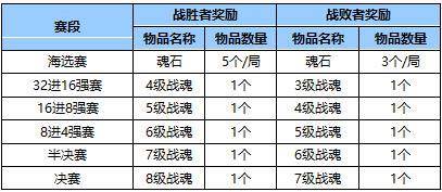 6、海选赛、晋级赛期间,参战玩家均可获得丰厚的魂石、战魂奖励,16强以上玩家还可在聊天时获得尊贵的“服战称号”。