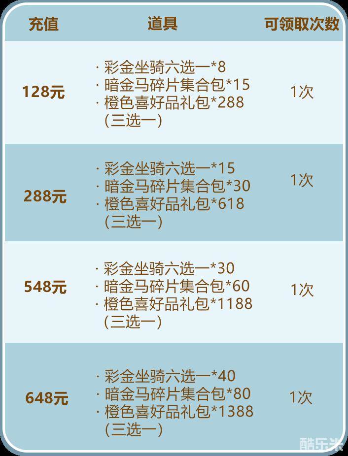 3.半月礼盒的充值会正常赠送对应额度的黄金;