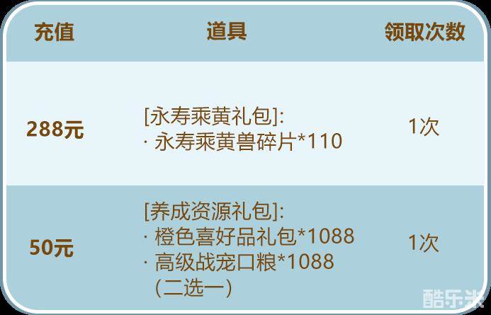 少年们单笔充值指定金额,即可得到永寿乘黄兽碎片及丰厚的养成资源!少年们千万不要错过哟~