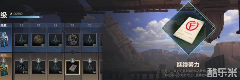 之后在25级的时候,能够获得一个继续努力的个性化标志,这个可以在将对方击败之后并且需要脱战一秒之后,我们可以将这个标志贴在地面上来嘲讽对面,十分好玩。