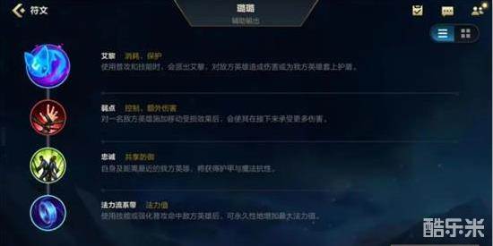 装备方面:正常软辅出装,炽热香炉、流水法杖、和音之律、双生暗影,软辅四件套备齐,最后两件看情况出保命装还是伤害装。如果对局是在太顺,水平差距过大,可以玩一手ap输出装,不过上分不太推荐。