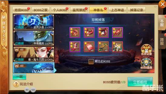 7. 本服神兽岛击杀boss或采集水晶次数与跨服神兽岛共享。