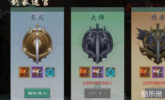 剑冢迷宫活动中参加的最低限度是队伍中的人数达到三人,但是三人很明显是很难通关的,所以组齐四人的队伍是必须的。在活动界面上可以看到剑冢迷宫活动的标志,点击参加就可以开始组队了,按照等级分为不凡,大师和传奇三个窗口,等级达到六十级才能进入大师难度,等级达到九十级才能进入传奇难度,所以一开始必须从不凡开始。