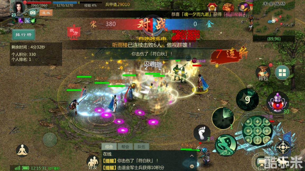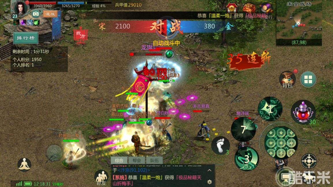 宋金战场考验的不仅仅是玩家的击杀效率。在《剑网1:归来》的宋金战场中还有龙旗和阵营元帅两大额外得分元素。战术玩法间更讲求玩家与玩家之间的配合默契。而在强敌手中拿下这些得分点的秘诀,就在于懂得回避强者,并且用调虎离山之计引开守旗玩家,然后一举攻破龙旗,攻破一面龙旗可得400积分,拿下一名元帅将会获得2000积分。如此高额的积分奖励,往往会成为反败为胜的关键。如何在保持人头积分贡献的前提下,攻破龙旗和阵营元帅,将成为影响胜负的关键。