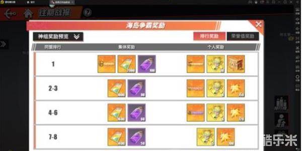最终的海岛名次排名是以占领岛屿的荣誉值和个人荣誉值加起来总和计算。对自己盟的实力做一个评估,然后再开始制定自己的打法和主攻的岛屿。