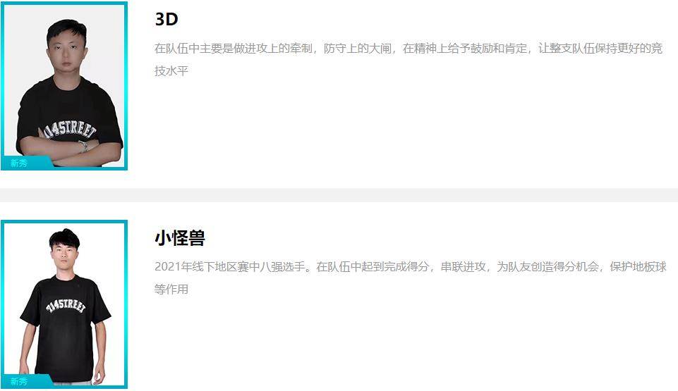 714战队新秀组三人分别是3D,小怪兽和完爆三人。队中3D曾获得过2020上海季军,2020南京4强,2021上海季军,2020新秀赛亚军等荣誉。在S职业较为强势的版本下,二阳决定打破常规使用SG+SF+C的阵容锻炼新秀,这样大胆的尝试效果如何,确实让小编都十分期待。其实细细分析,小怪兽作为主力得分点,在新秀组中实力绝对是值得的认可,司职SG职业势必需要占用大量的球权,这点恰好与3D的打法相辅相成,3D这位选手的打法更加倾向蓝领,做好防守,打进读秒球这是3D擅长的,而队中完爆的任务就更加清晰了,拿好篮板,做好防守等。另一方面。3D作为老将能给给予新秀最大的包容和理解,队伍氛围良好,也能在一些关键球,关键场次中给予另外两位新秀极大的帮助。