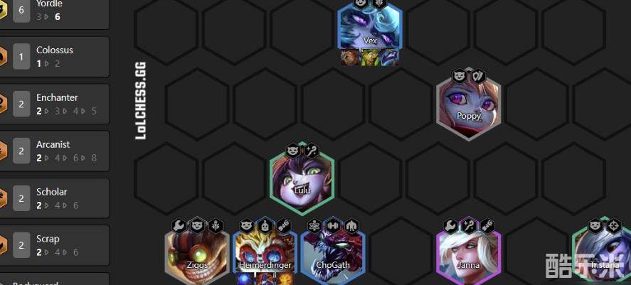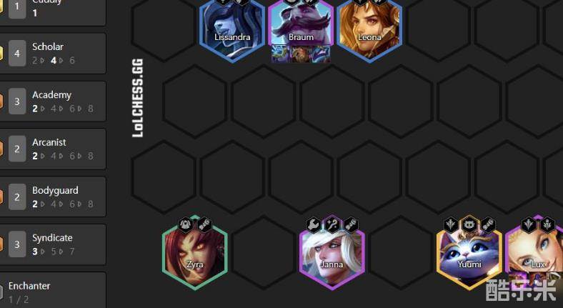 阵容主C就是拉克丝,玩过的朋友就能发现拉克丝技能的伤害非常高,再搭配强势前排抗伤吸收伤害,辅以4学者快速回蓝,拉克丝搭配法强装备秒人非常爽。阵容强度颇高!