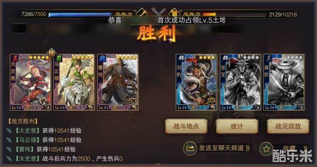 最后,在武将达到20级之后,玩家可以觉醒一名武将。这时可以选择觉醒太史慈,带上【先驱突击】来增加其输出能力,然后就可以靠着6000的兵力挑选简单难度的五级地开刀了。前几块需要准备好补刀队伍做到万无一失,待兵力达到7000左右基本上就不需要补刀了。