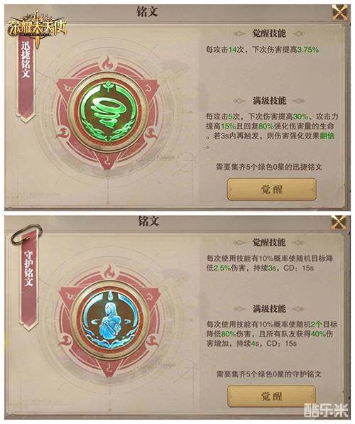 守护铭文:属性涵盖非常全面,觉醒技能本身提供降低伤害效果,满级后技能一方面针对敌方的伤害降低,但同时还提供了一个全队40%的伤害加深BUFF,攻防一体。