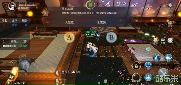 限时开放的全服趣味答题活动。每周二、四、六、日开启1次。参与玩家需要限定时间内回答20道题目,再根据答案跑动至正确区域。回答正确,即可获取大量经验并累计积分。在比赛结束后,根据积分排名,前三名玩家可获取额外的称号奖励。