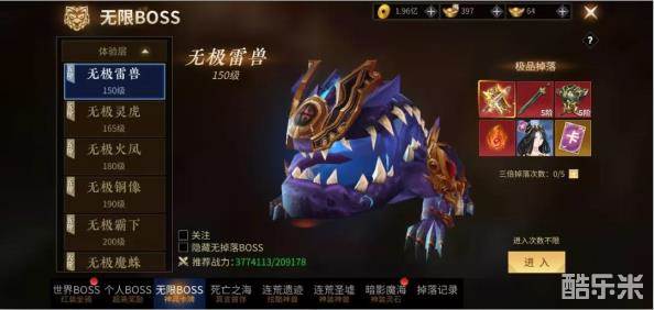 其次击杀无限BOOS,有机会掉落珍稀卡牌,副本的进入次数不限,每天有5次3倍掉落次数。