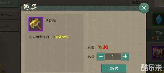 第一个方式可以直接来购买,但是购买的话消耗的是银票,这个是氪金的道具,一个是三十银票,在价格上还是相对较高的。如果说有高阶的潜龙秘宝的话,还是可以花费的,低级的就没有必要来花费这个货币了。
