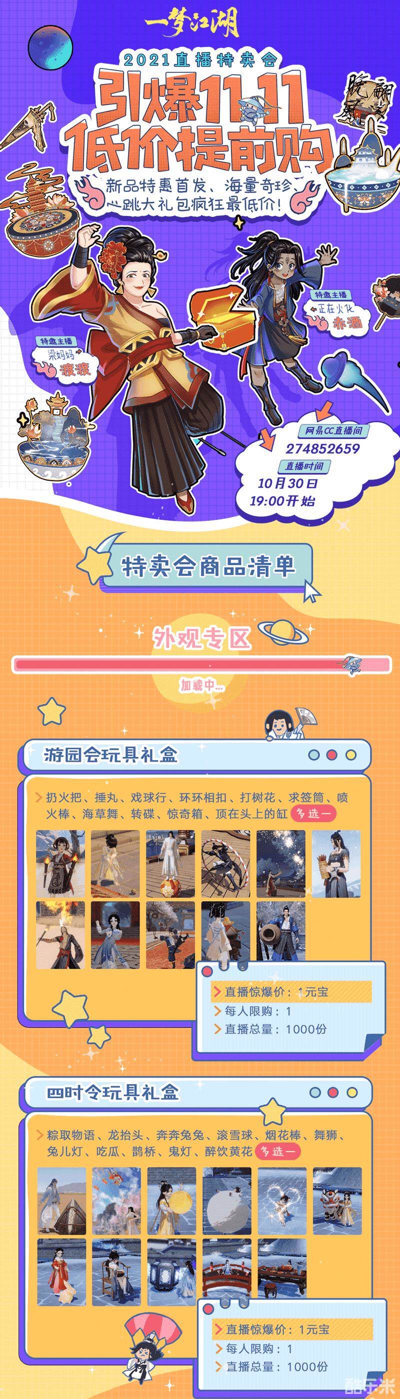 《一梦江湖》2021年深秋钜惠“吉时热卖”将于2021年10月30日晚19:00开张!全网首发新品特惠,江湖好物骨折价!