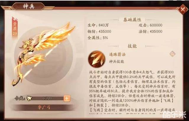 以上就是今天给小伙伴们带来的少年三国志2赤金神兵李广弓怎么样的解答,李广弓适合给赤金2武将使用,希望大家喜欢,