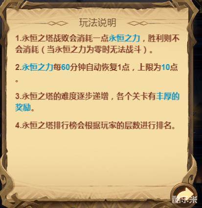 永恒之塔战败即会扣除玩家的1点“永恒之力”,胜利则不会消耗,而且每60分钟自动恢复1点,上限为10点。