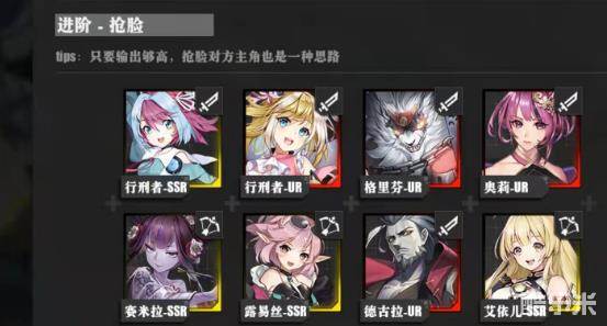 小编选择的卡牌搭配是行刑者-SSR,行刑者-UR,格里芬-UE,奥莉-UR,赛米拉-UR,露易丝-SSR,德古拉-UR,艾依儿-SSR,可以见UR级别的角色还是比较高的,基础属性强才能打出高伤害。