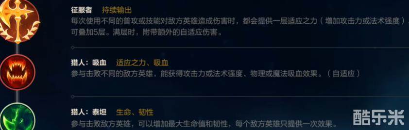 第三件装备幕刃进一步提升穿甲,第四件选择大穿甲弓,提升锐雯的打坦男女,最后一件选择复活甲,提高锐雯的团战容错率。在锐雯的天赋方面,主要是选择征服者。1秒3Q的效果完美契合征服者的属性。下面选择常规的天赋,甜食专家,猎人吸血以及泰坦。