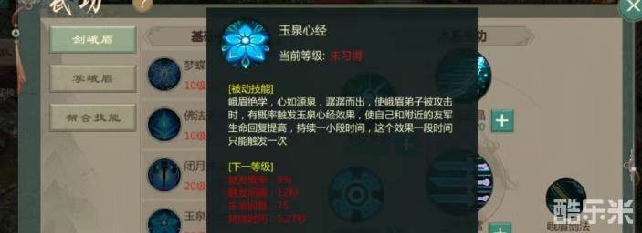 除了技能外,心法也要选择好,峨眉需要重点加玉泉心经和波罗心经,这两个心法能够提升治疗效果,无论时攻击还是被攻击,都有几率回血,所以峨眉单刷BOSS确实可以,但是效率比较低,是硬生生的将BOSS磨死的。
