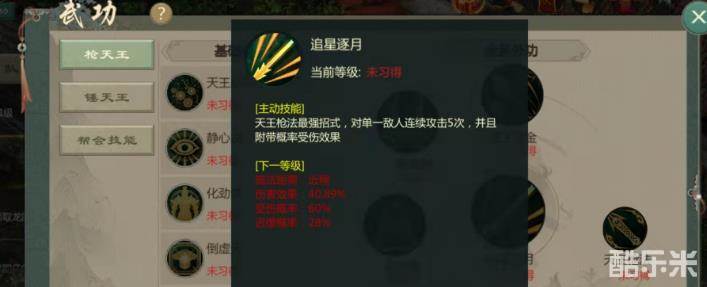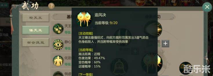 天王擅长的是近战输出,兼顾一些防御,分为枪天王和锤天王两种,其中枪天王的技能霸王錾金和追星逐月,都是输出非常高的技能,而锤天王的追风决和纵横八荒也是伤害技能,不过锤的攻击距离要比枪近一些,所以天王的这两个武器就组成了近战中的远近搭配。再看看天王的通用技能,断魂刺是一个控制技能,可以让伤害目标昏迷,金钟罩在使用之后可以大幅度提升天王的防御能力,并且降低受到的最终伤害。