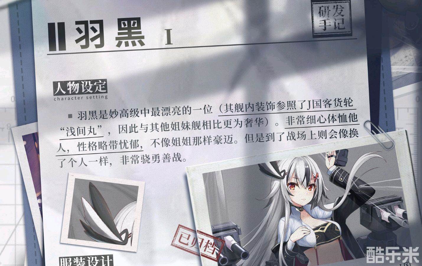首先羽黑他的舰种属于普通输出战舰。来自于j国家。作为一名后期战舰,他总胜于改变场上的局势,瞬间扭转将有利的一方变成劣势,将自己的阵容变成顺风。黑色的战斗风格是他的经典搭配。