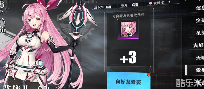 第三点就是索要伙伴的品级了,品级的话要求不是很多的,在目前的设定中,只有UR级别的伙伴是不可以索要的,这个也是最高级别的,相信也没有多少玩家会舍得给出这个资源的,是比较合理的设定。