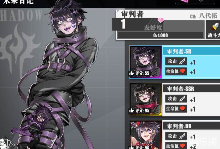 审判者这个伙伴在势力上是暗影人,暗影人的话是一个反派的设定。在品级设定上是有SR、SSR和UR这几个品级的,在能力上设定有一定的区别,下面就分开来分析。
