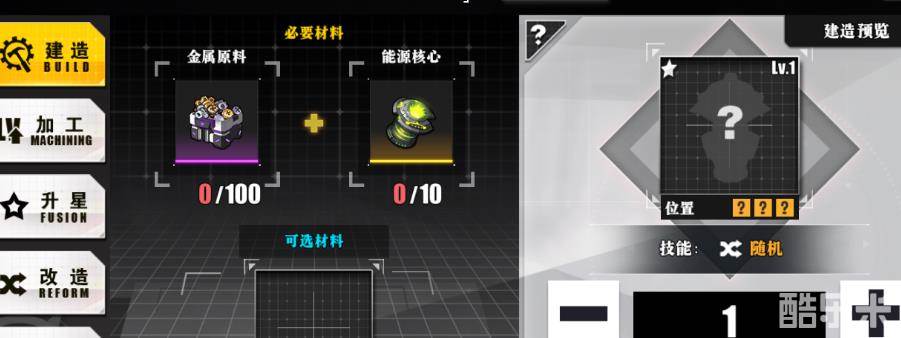 第二个就是建造一次防御工事,这个防御工事相关的任务是比较多的。在进入到公会界面之后,玩家点击防御工事这个图标就可以来到建造的界面中。在这里可以看到建造的话是需要金属原料和能源核心的,这两个材料一个是要一百个,一个是十个。材料的获取方式可以通过公会商店来购买,也可以通过一些福利道具来获得。